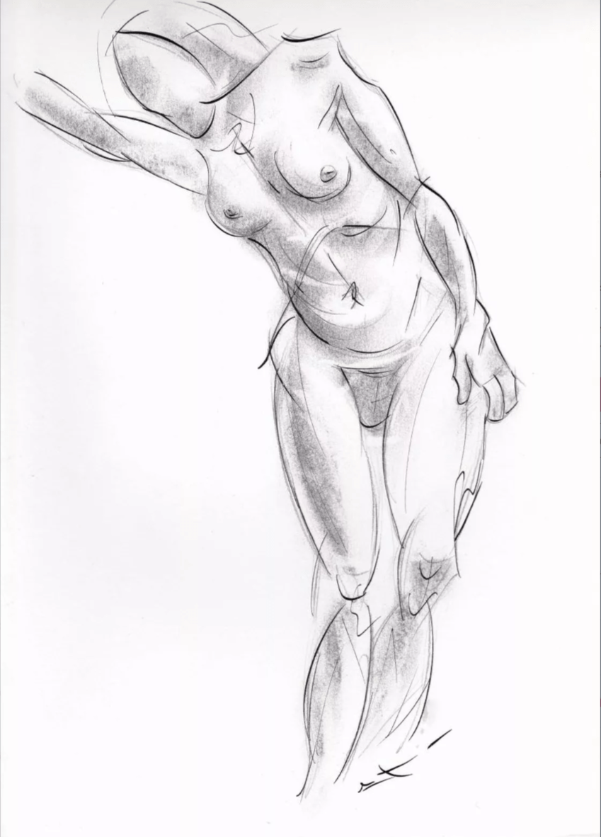 Dessin fusain sur papier, 21 x 29,7 cm. Nu féminin