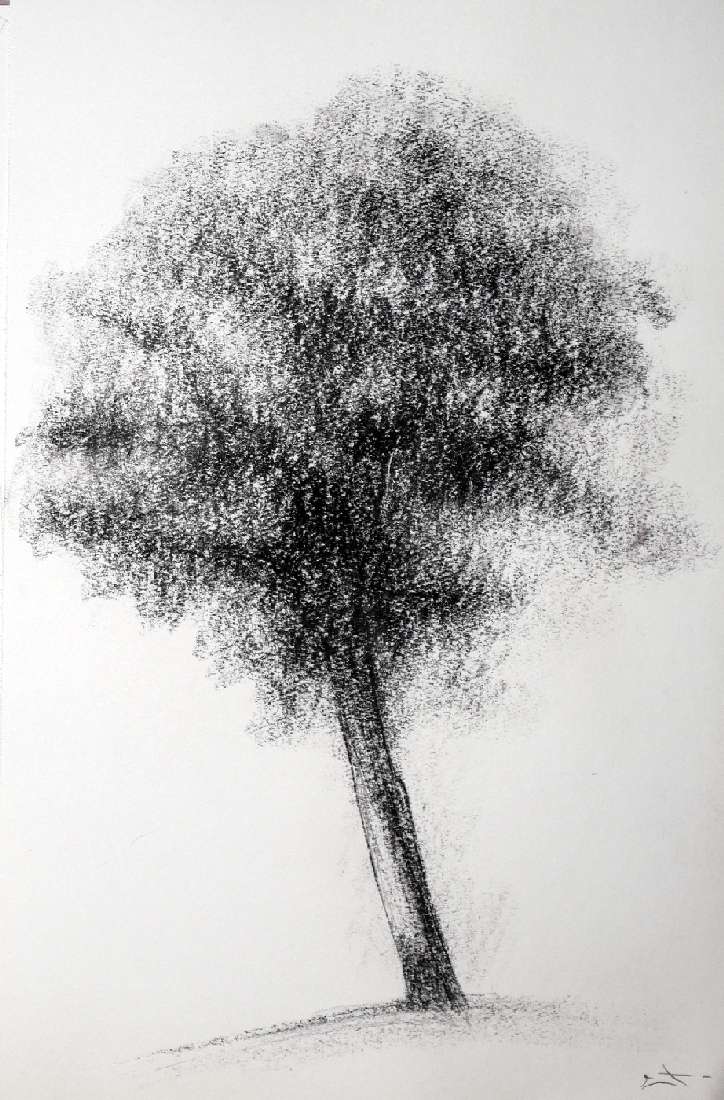 La force de la ramure et légèreté du feuillage sous le fusain qui se fait léger ou puissant… fusain sur 200 grams imagine Canson Paper