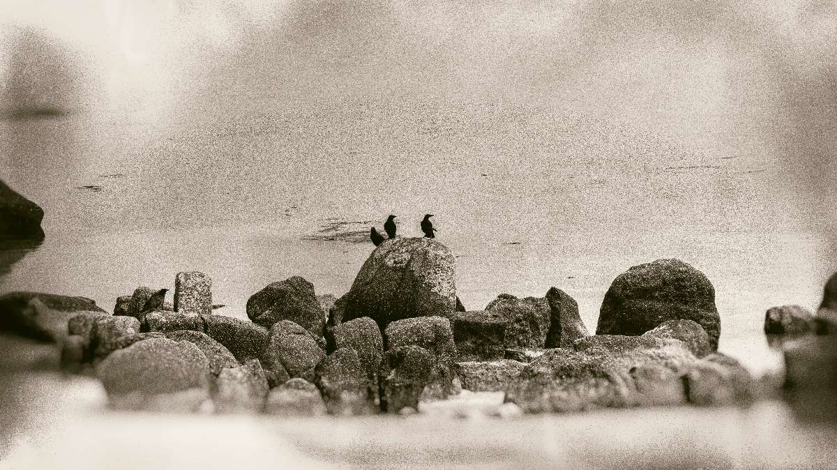 Trois corbeaux perchés sur l’allée couverte du Kernic en Bretagne.. Tel les âmes des ancêtres du néolithique protégeant ce sanctuaire mystique.