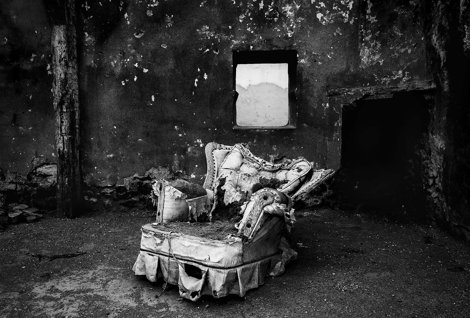 Vieux fauteuil abandonné dans un bâtiment dans le désert Andalou. Tirage limité à 30 exemplaires sur papier Bright White Hahnemühle 310gr numéroté et signé. Marge de 5 cm. Feuille : 65 x 48 image : 55 x 38 cm