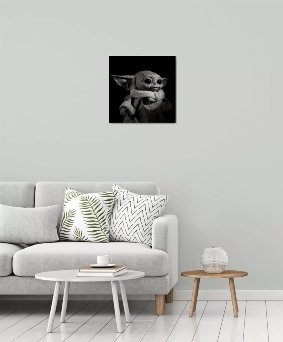Un portrait réaliste noir et blanc sur papier Baryta Prestige II Canson 340g du personnage de Star Wars Grogu. Tirage limité à 30 exemplaires numéroté et signé. Marge blanche de 5 cm. Autres tailles ou encadrement nous contacter. Feuille 50 x 50, image 40 x 40 cm.