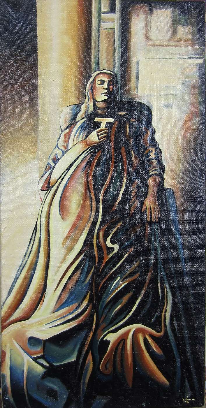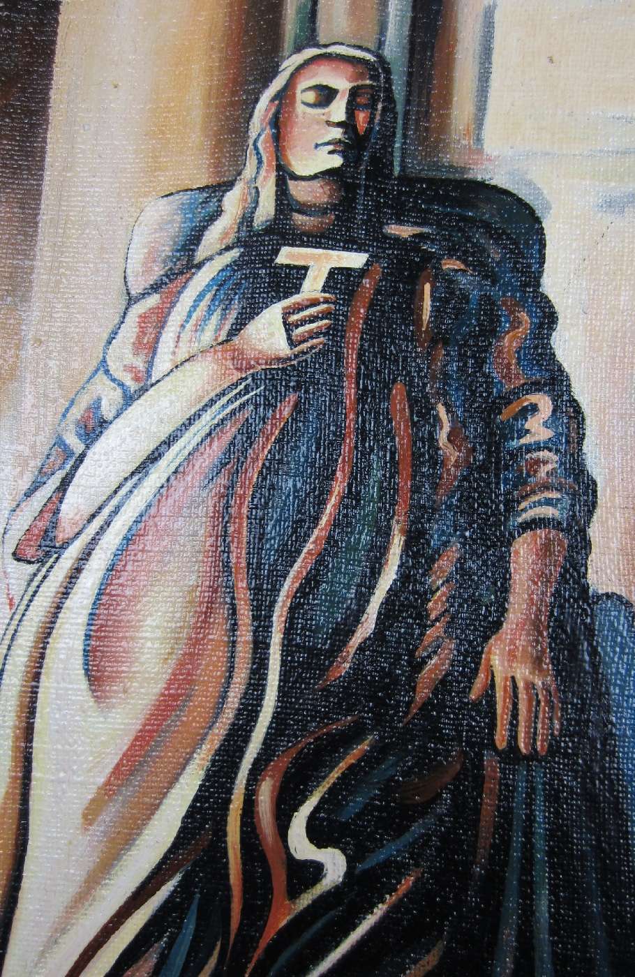Huile sur toile et chรขssis bois. Gisante. Tombeau dans une รฉglise.