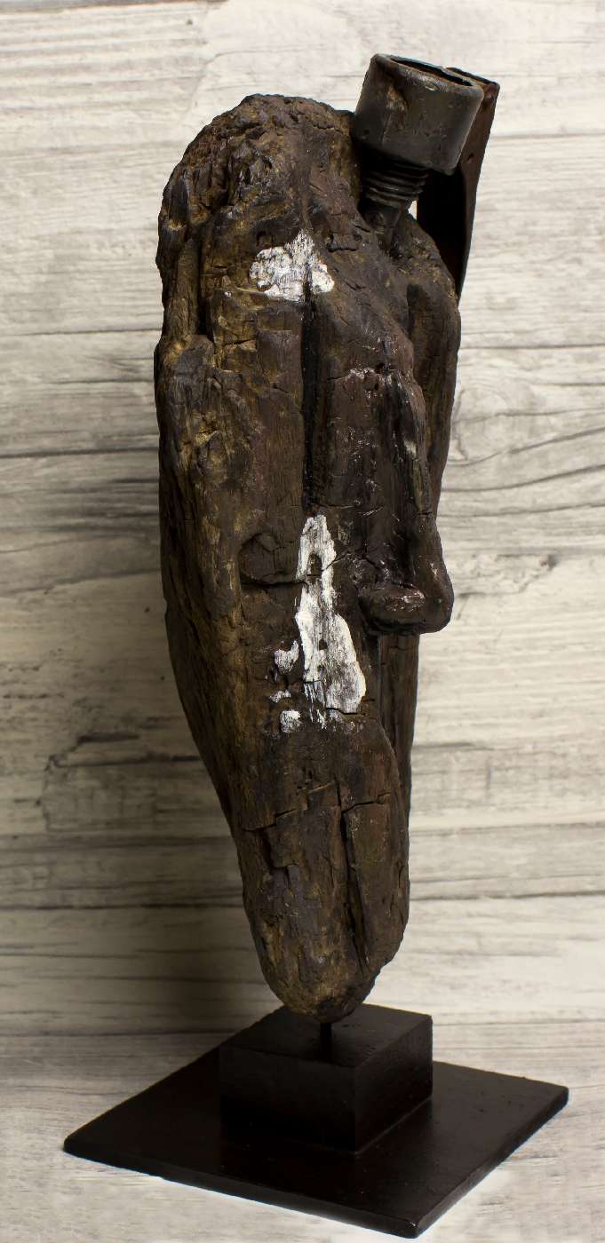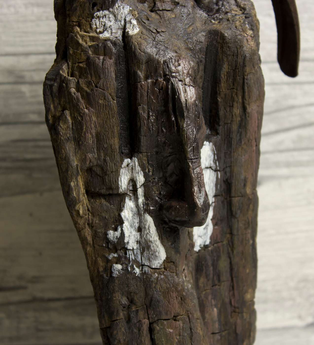 Sculpture portrait bois flotté  et manche de grenade 28 x 13 cm.