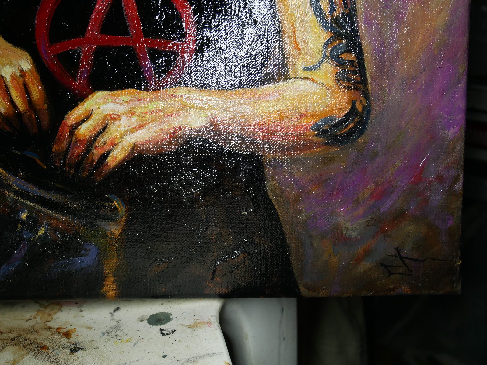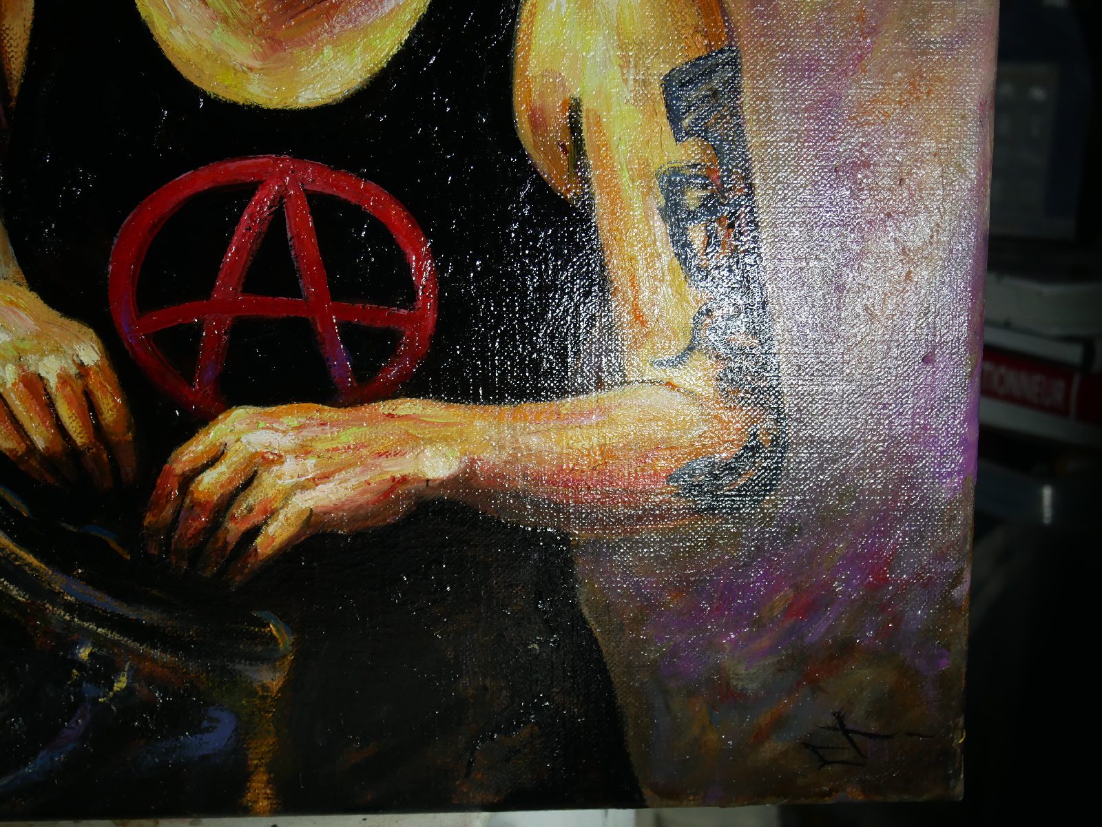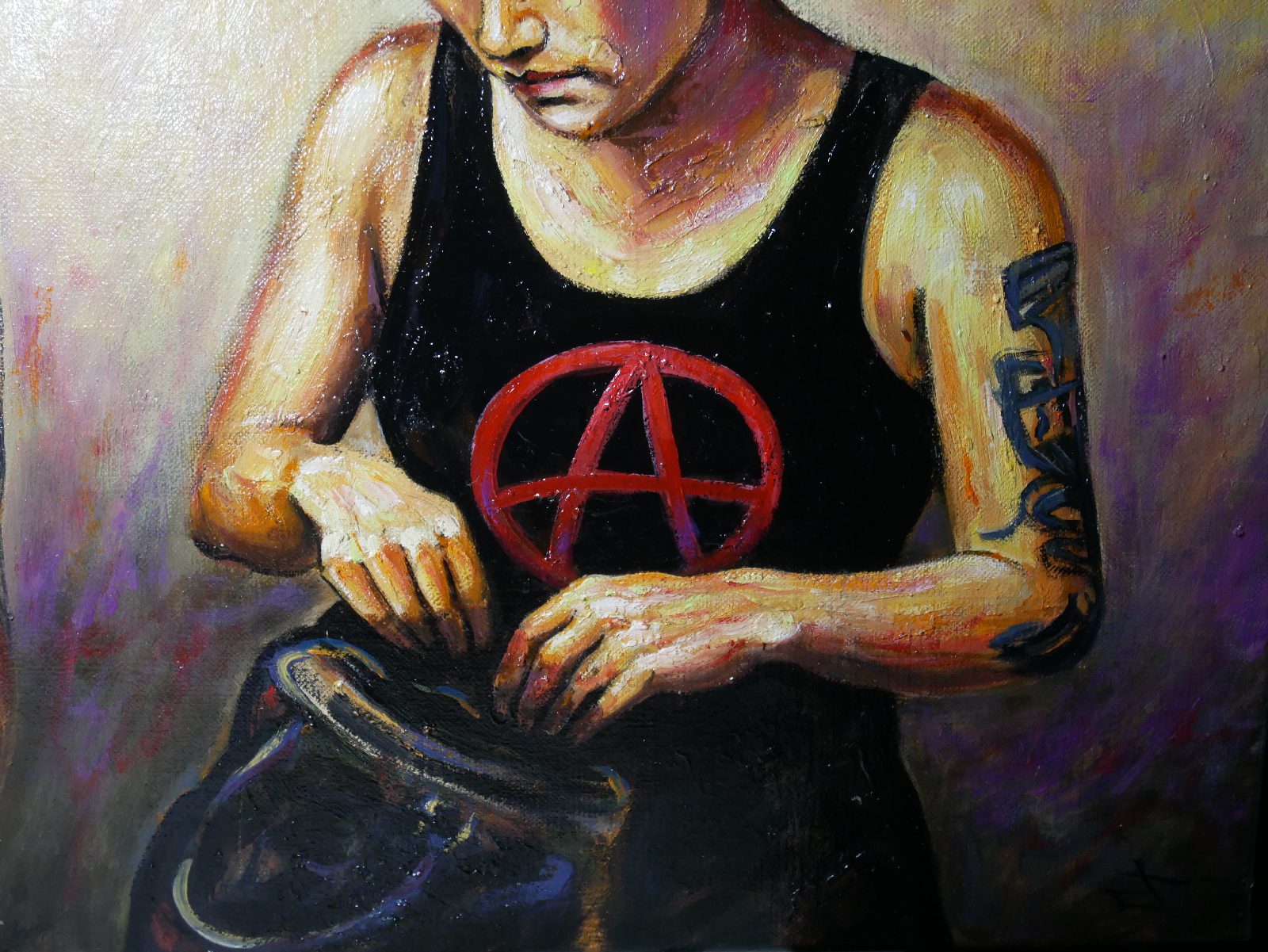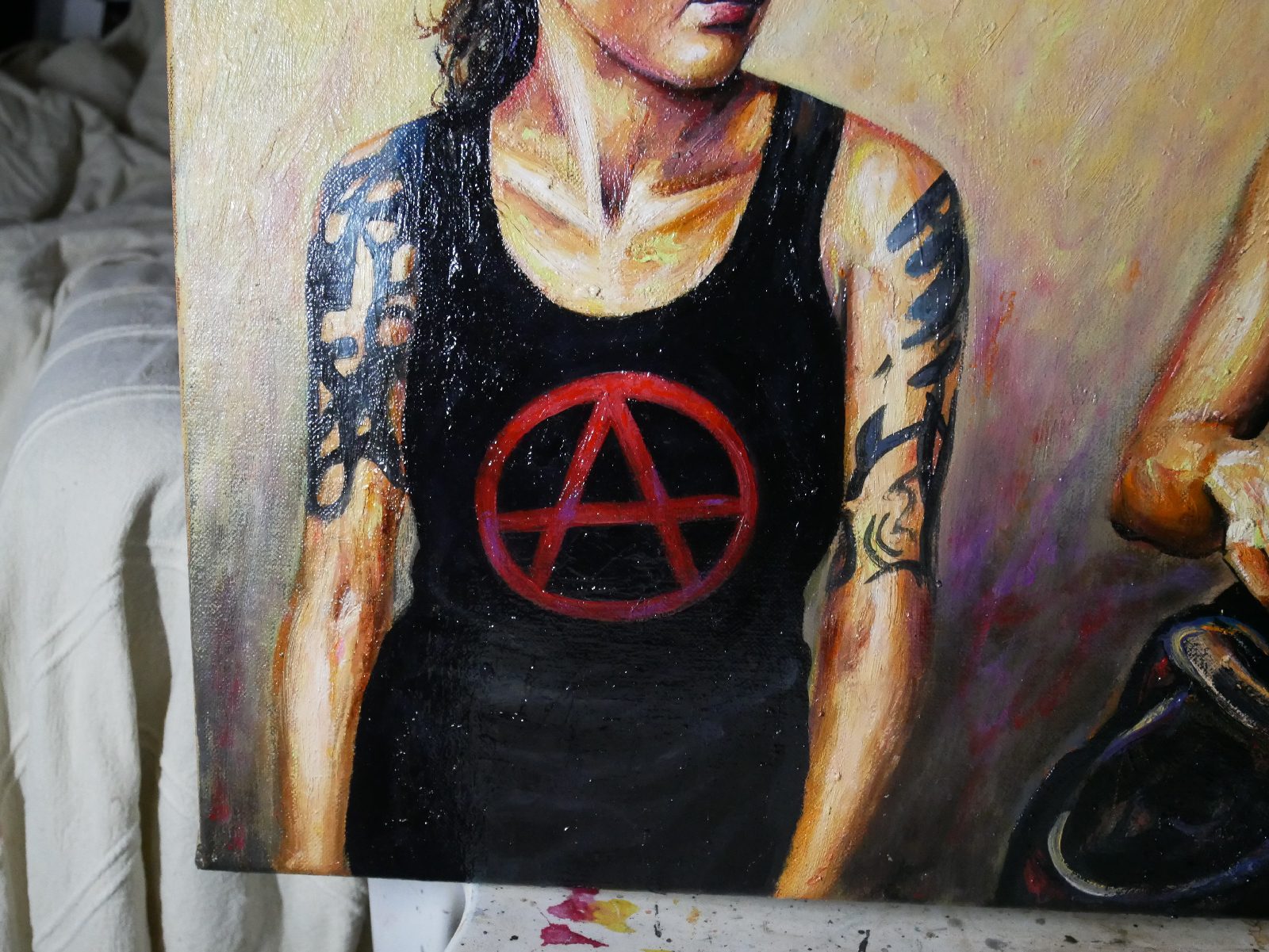 Ici, pas de paillettes, mais la réalité d’une jeunesse qui porte ses convictions à même la peau. Le symbole A, le regard lourd, et cette lumière presque théâtrale viennent capturer l’essence de la rébellion.